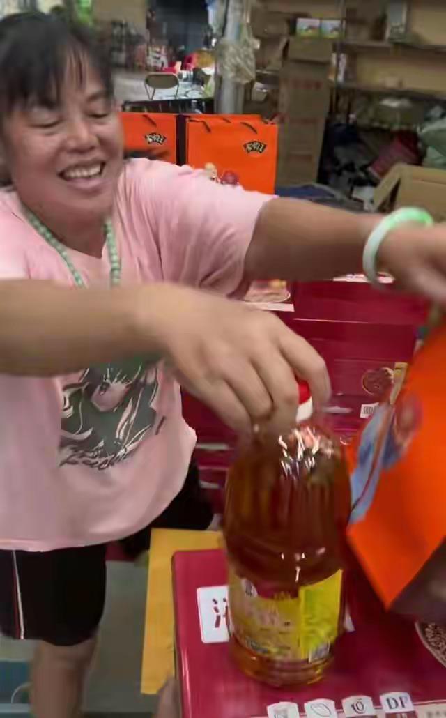 全红婵爸妈给员工准备了节礼,也早早的就分发下去了。发节礼一定要提前,因为你发了以后员工就可以不用自己再去买了。给员工准备的节礼也都是实打实可以用得着的。有月饼、海红面、还有食用油。当天全妈还特意打扮了一番,她穿着粉色T恤、扎着马尾辫,开心的像个孩子。也是当上老板娘了,日子越过越红火,全妈是打心眼里开心。