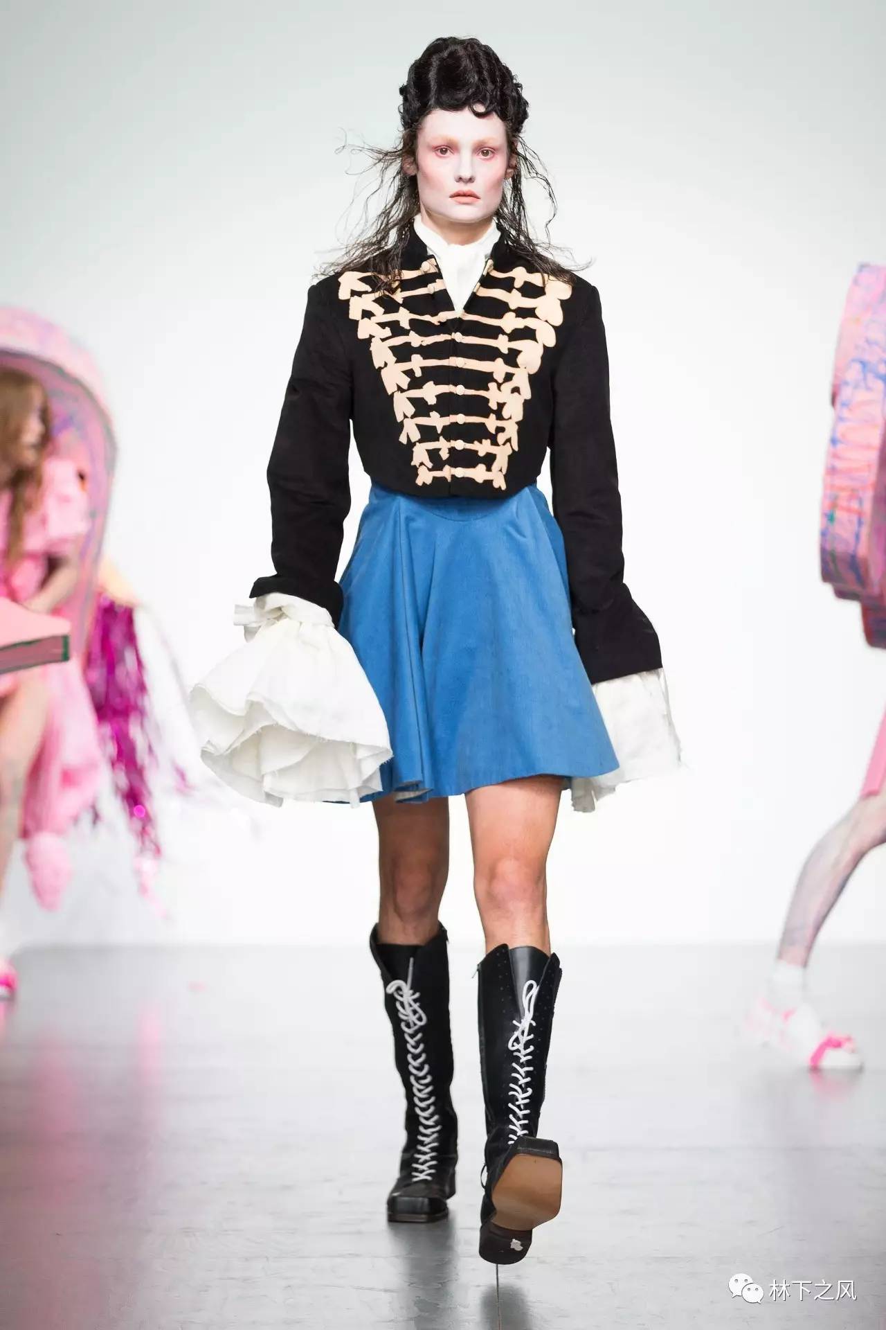 虽然英国人常给人以中规中矩的刻板印象,可要是比起奇思妙想啥的,准够你喝一壶的,还真不是他们的对手。正如数学家可以写出爱丽丝掉进兔子洞后遇见有趣动物和奇特贵族的故事,精通语言的教授可以构建出庞大惊人的魔幻世界,甚至创造另一种精灵语,圣马丁的毕业生同样可以在秀场营造出无与伦比的奇特氛围。
