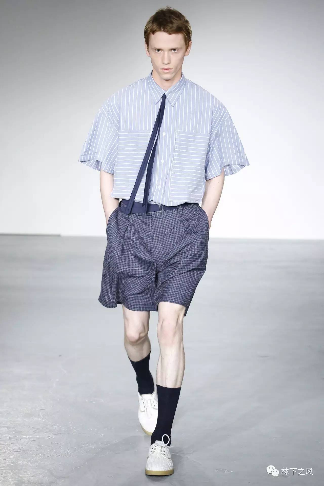 白底宽条纹衬衫则展现了经过精工剪裁后条纹衫的最佳示范,细格短裤的剪裁工艺独特,易于穿着。