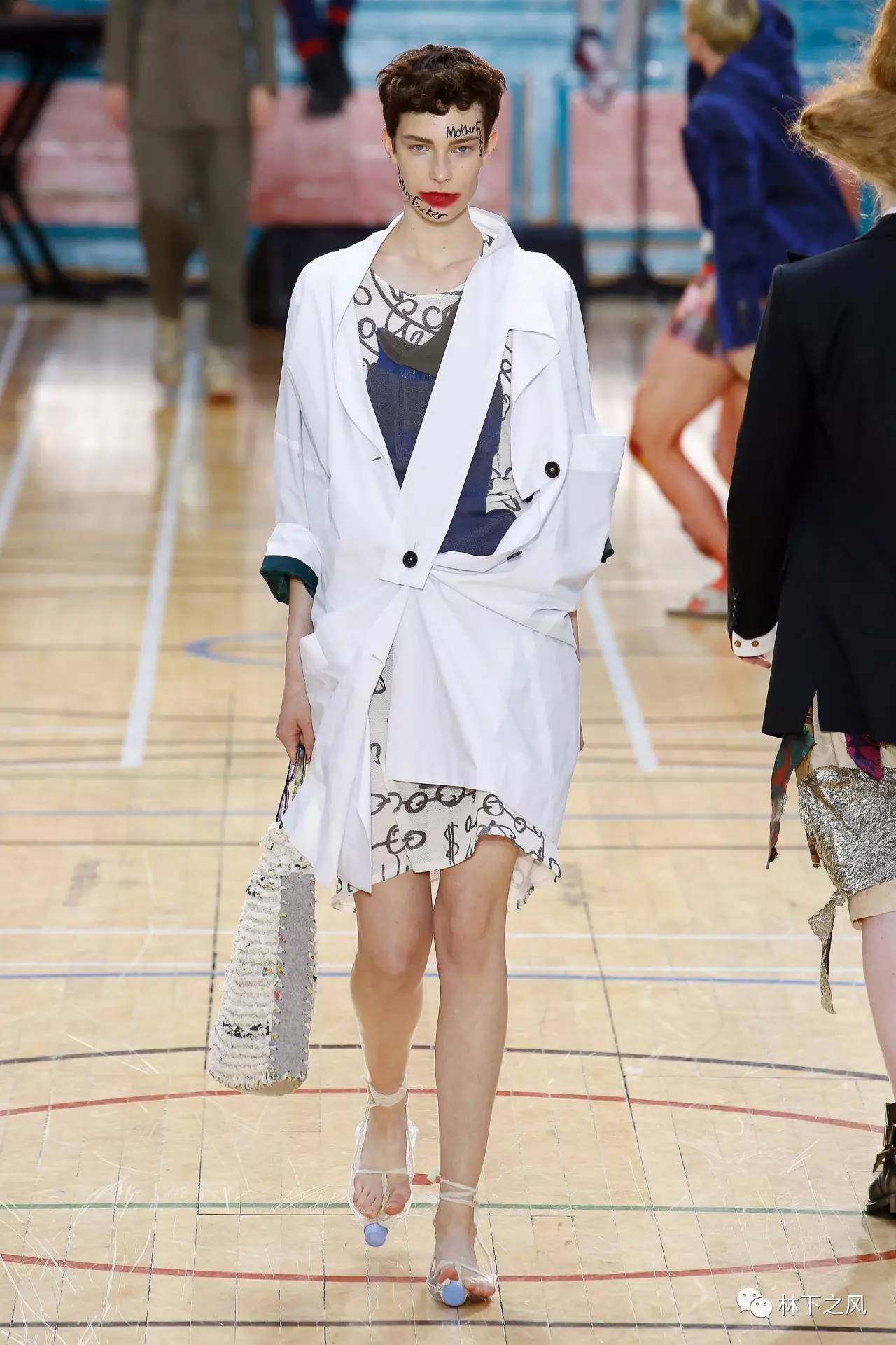 通常本次男装节上的维维安女装都是这样的风格:不规则设计,遇袭式化妆,细节展示和有意义的奇幻文字